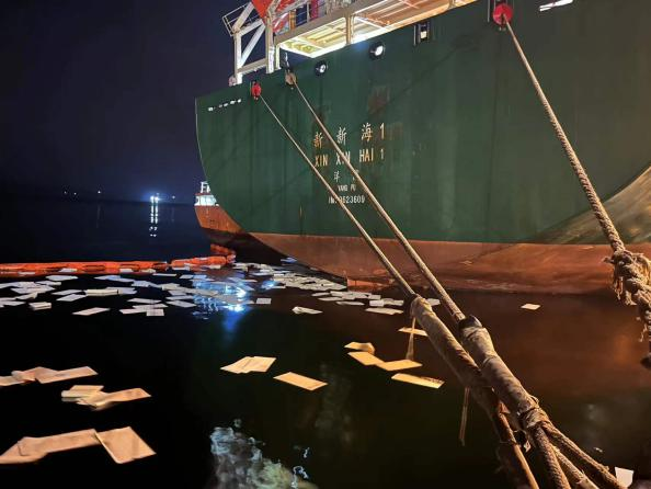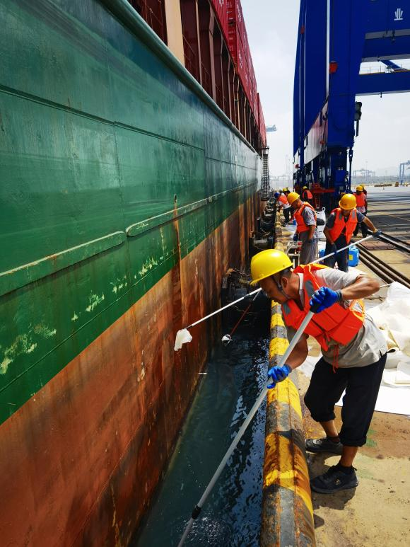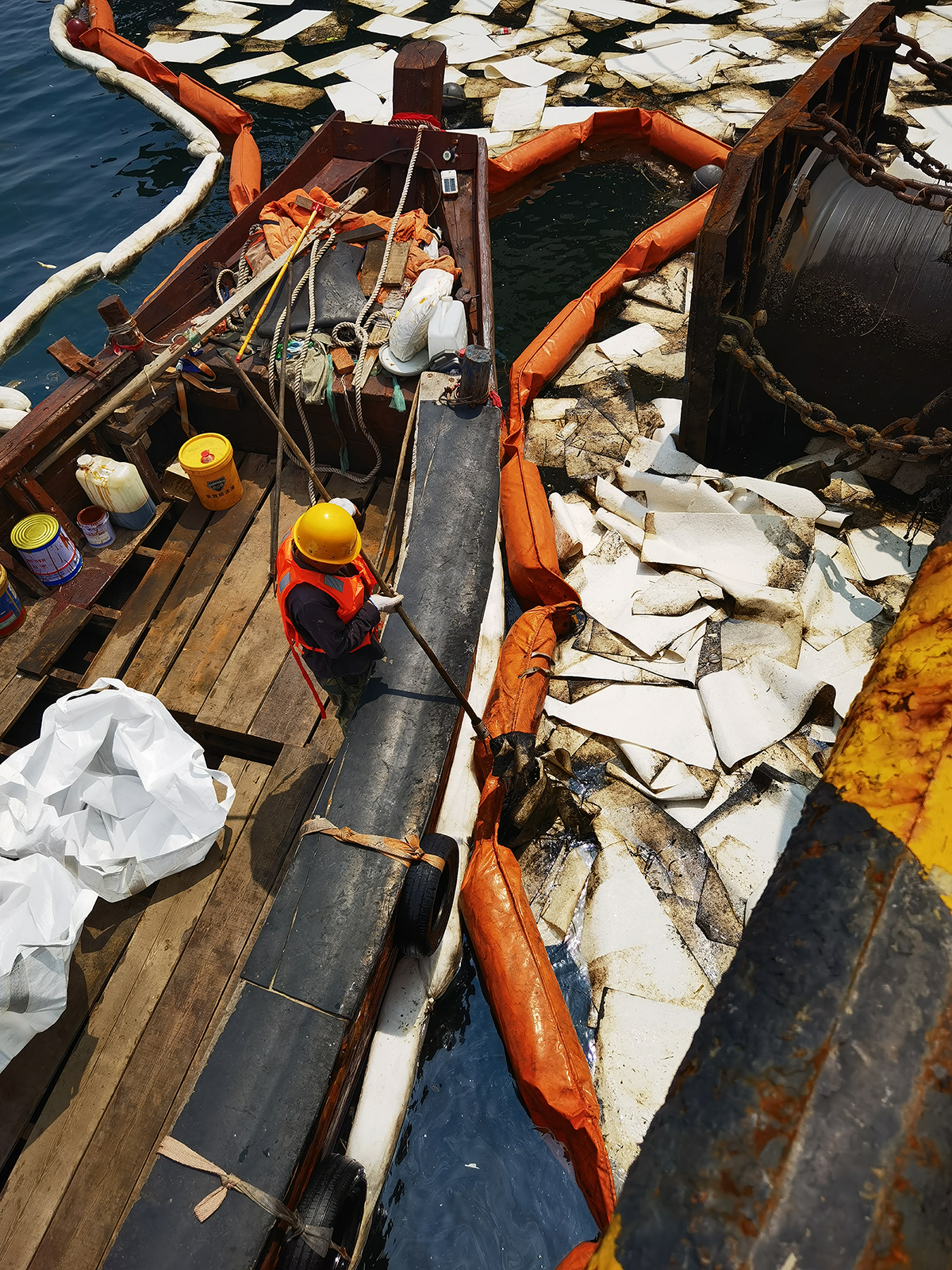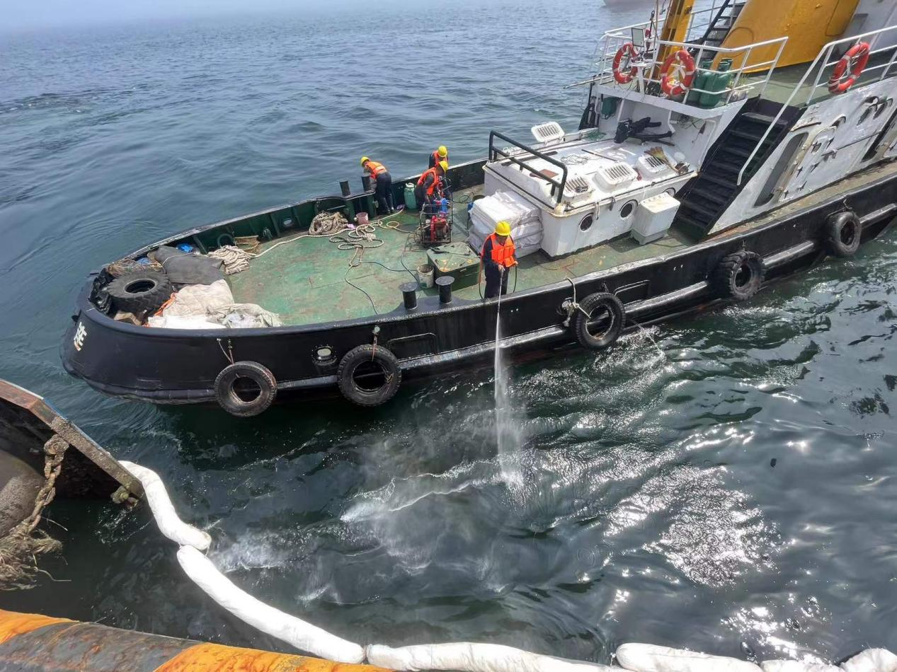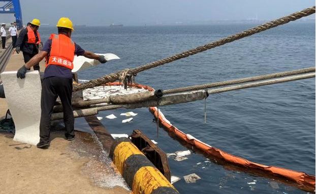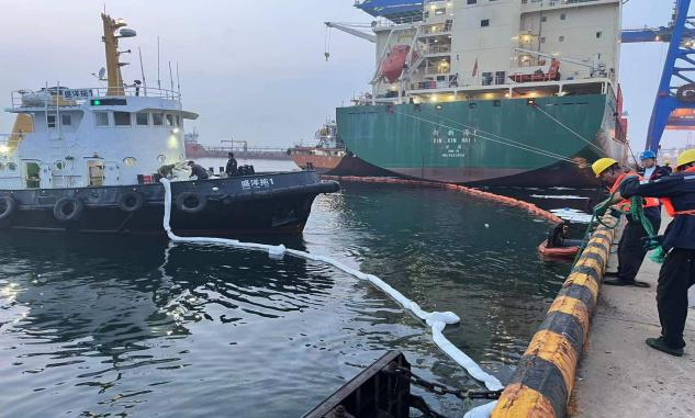2023年7月25日“新新海1”輪在大連港大窯灣DCT三期碼頭加油過程中發(fā)生溢油泄漏事故。由于“新新海1”輪在受油作業(yè)中操作閥未及時(shí)切換導(dǎo)致冒油事故,燃油泄漏入海。泄漏的燃油污染了自身船體、附近海面、泊位附近的岸壁。供油船舶“興龍舟768”以及潛水探摸作業(yè)船舶“海樂拖2”船體均受到不同程度的污染。污染水域約0.15平方公里。接到通知后我司總指揮第一時(shí)間啟動(dòng)溢油應(yīng)急預(yù)案,調(diào)派溢油應(yīng)急指揮人員、操作人員、應(yīng)急船舶、物資、車輛等到達(dá)事故水域進(jìn)行清污工作。同時(shí)按規(guī)定報(bào)告大連海事局。經(jīng)過8小時(shí)的清理作業(yè)有效地阻止了溢油的擴(kuò)散,并清除了海面大部分油污。并派遣一艘應(yīng)急船在附近海域進(jìn)行為期一周的實(shí)時(shí)監(jiān)護(hù)。