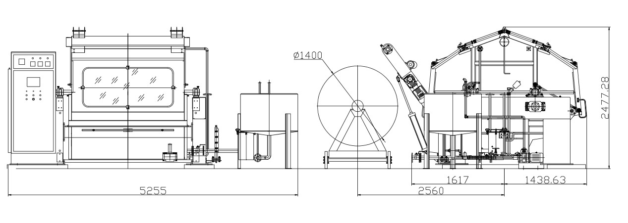 罩頂間接燕汽盤管可防止冷凝水滴,罩頂排氣簡(jiǎn)用以排除機(jī)內(nèi)空氣,維持非氧化性氣氛。